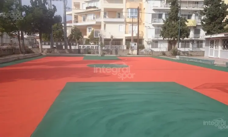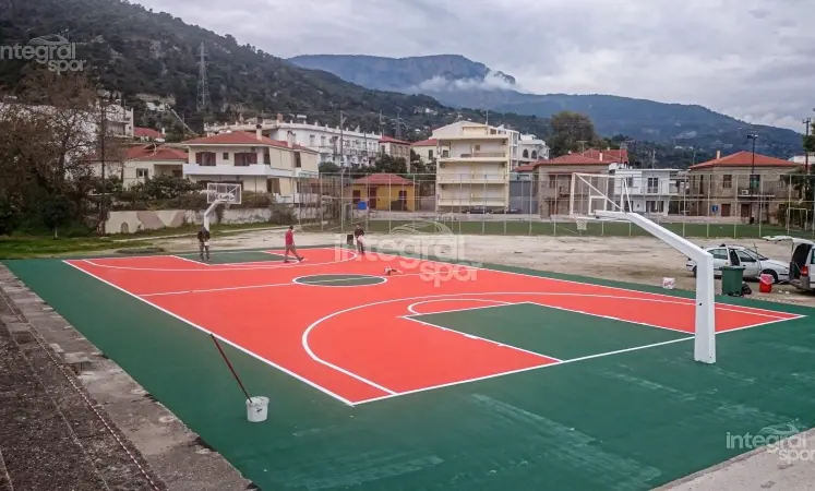 La construction de terrains de sport polyvalents à revêtement de sol en acrylique dans différentes régions de la Grèce a été achevée et mise en service.